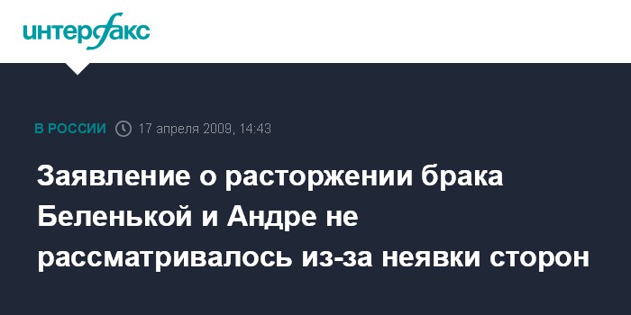 Заявление о расторжении брака Беленькой и Андре не рассматривалось из-за неявки сторон