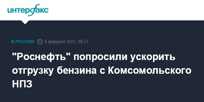 Москва. 9 февраля. INTERFAX.RU - Правительство Хабаровского края сообщило, что направило в "Роснефть" телеграмму с просьбой ускорить поставки местным нефтетрейдерам бензина с Комсомольского НПЗ, который ранее был куплен на бирже. Чиновники рассчитывают, что компания согласится на это.