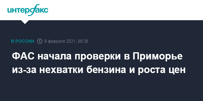 Москва. 9 февраля. INTERFAX.RU - Приморское УФАС России проводит проверки на рынке нефтепродуктов из-за нехватки бензина и жалоб на рост цен, сообщила во вторник пресс-служба управления.