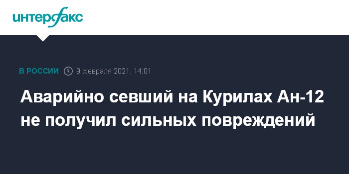 Москва. 9 февраля. INTERFAX.RU - Экипаж и пассажиры военно-транспортного самолета Ан-12 не пострадали в результате инцидента с военно-транспортным самолетом на аэродроме курильского острова Итуруп.