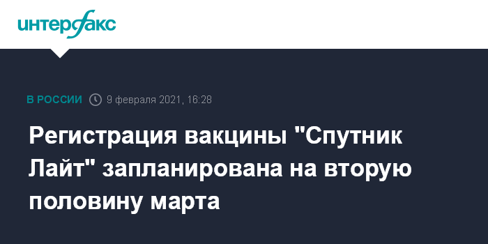 "По вакцине "Спутник Лайт" продолжаются клинические исследования, ожидаем её регистрации во второй половине марта", - сказал Мантуров агентству.