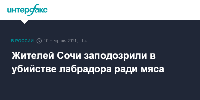 Москва. 10 февраля. INTERFAX.RU - В полиции Сочи начали проверку по жалобе женщины об убийстве ее лабрадора, которого якобы похитители съели. Об этом "Интерфаксу" сообщили в городском управлении внутренних дел.