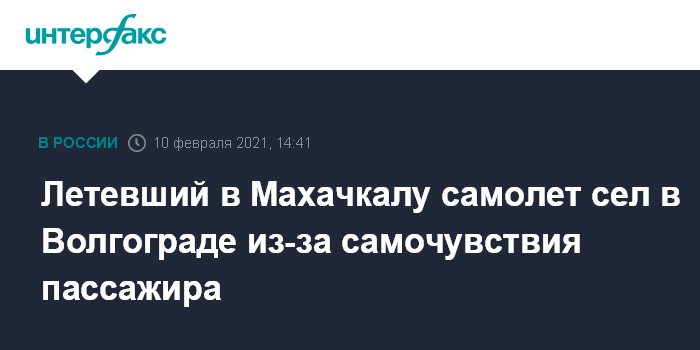"Рейс авиакомпании "Аэрофлот", следовавший по маршруту Москва - Махачкала, совершил вынужденную посадку в аэропорту Волгограда в 10:42 по причине плохого самочувствия одного из пассажиров, который после посадки был передан в медучреждение", - говорится в сообщении.