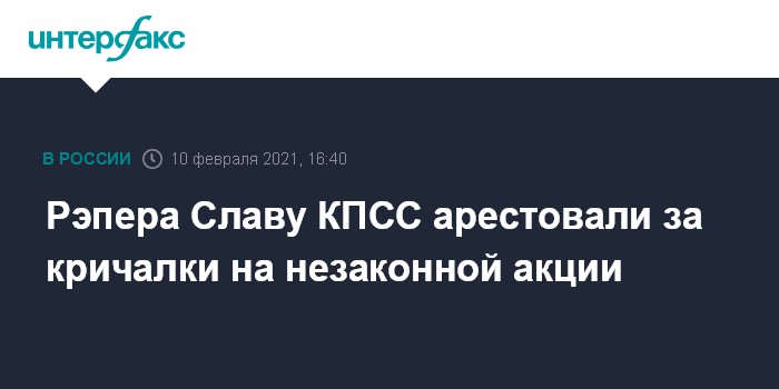 Москва. 10 февраля. INTERFAX.RU - Куйбышевский суд Санкт-Петербурга арестовал на семь суток рэпера Вячеслава Машнова (Слава КПСС) за кричалки в ночь после несогласованной акции протеста в центре северной столицы.