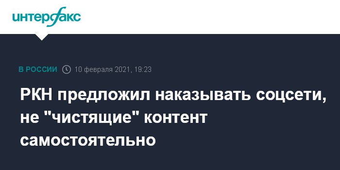 Москва. 10 февраля. INTERFAX.RU - Роскомнадзор предлагает рассмотреть возможность введения административной ответственности в отношении социальных сетей за то, что они самостоятельно не удалили запрещенный в РФ контент, до всяких требований надзорных органов, сообщил замглавы Роскомнадзора Милош Вагнер.