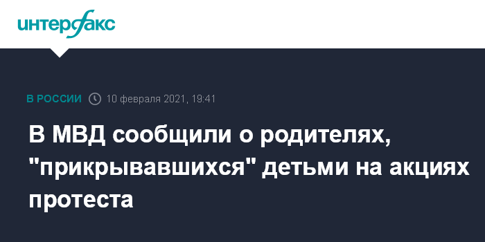 Москва. 10 февраля. INTERFAX.RU - Некоторые родители использовали детей на несанкционированных протестных акциях, прошедших в январе в различных регионах России, в качестве живого щита, заявил первый заместитель начальника Главного управления по обеспечению охраны общественного порядка МВД РФ Леонид Веденов.