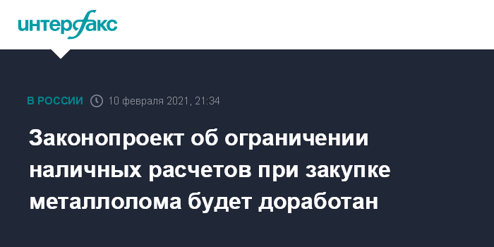 Законопроект об ограничении наличных расчетов при закупке металлолома будет доработан