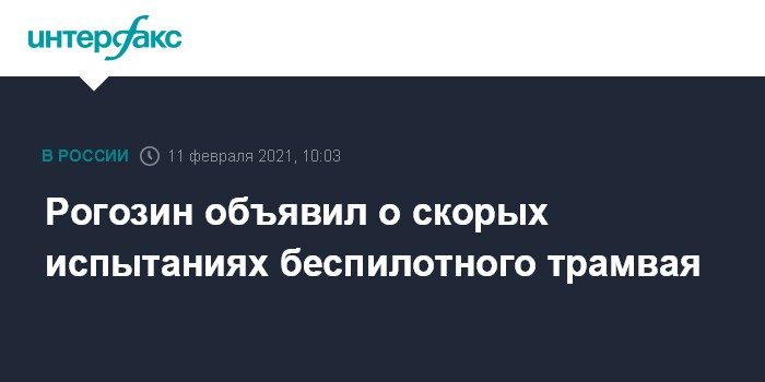 Москва. 11 февраля. INTERFAX.RU - "Роскосмос" в ближайшей перспективе начнет тестировать беспилотный трамвай, который впоследствии будет запущен на космодроме Восточный, объявил гендиректор госкорпорации Дмитрий Рогозин.