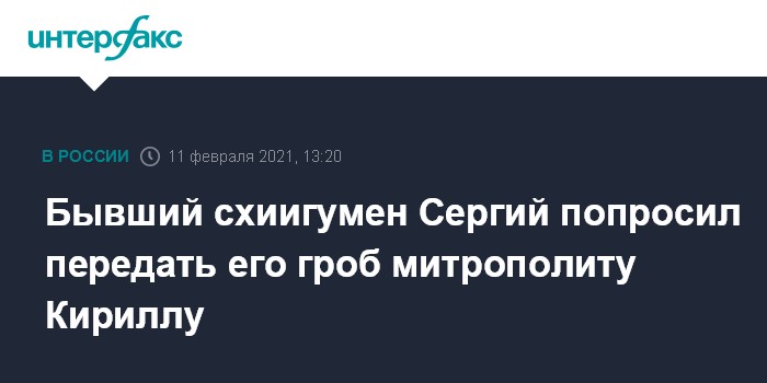 Бывший схиигумен Сергий попросил передать его гроб митрополиту Кириллу