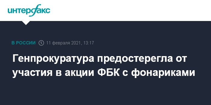 Ранее руководитель сети региональных штабов оппозиционера Алексея Навального Леонид Волков сообщил о планах провести акцию в воскресенье, 14 февраля, в России в новом формате. Во время акции, инициированной "Фондом борьбы с коррупцией" (ФБК, признан в РФ иностранным агентом), жителям больших городов предлагается вечером выйти во двор, включить фонарик на телефоне, поднять его вверх и постоять так несколько минут.