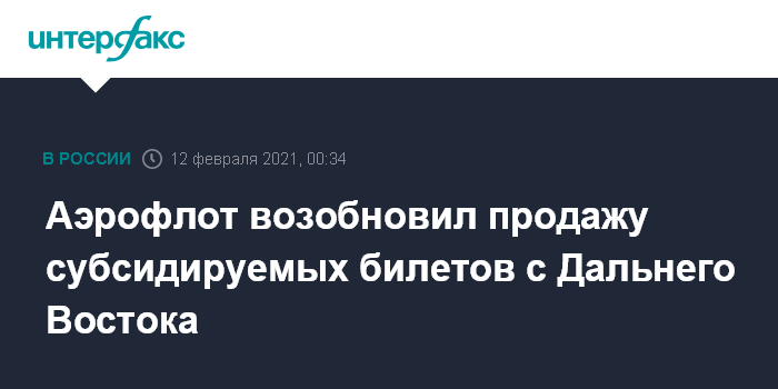 Москва. 11 февраля. INTERFAX.RU - "Аэрофлот" возобновил продажу субсидируемых билетов на рейсы с Дальнего Востока в Москву, сообщила компания.