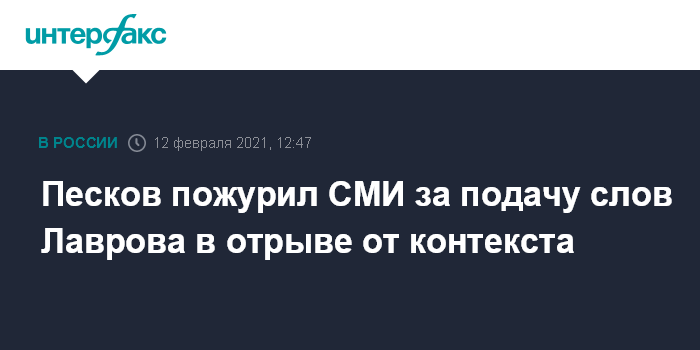 Песков пожурил СМИ за подачу слов Лаврова в отрыве от контекста