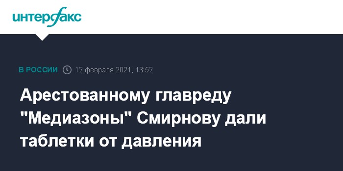 Москва. 12 февраля. INTERFAX.RU - Главный редактор издания "Медиазона" Сергей Смирнов, находящийся под арестом в Центре временного содержания в подмосковной деревне Сахарово, чувствует себя уже лучше, но давление у него все еще повышенное, сообщила "Интерфаксу" член столичной Общественной наблюдательной комиссии Марина Литвинович.
