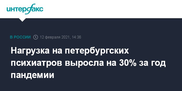 Москва. 12 февраля. INTERFAX.RU - Заведующий психиатрическим отделением Института мозга человека имени Бехтеревой РАН (Санкт-Петербург) Александр Чомский сообщил, что в 2020 году число обращений в учреждение выросло на 30%.