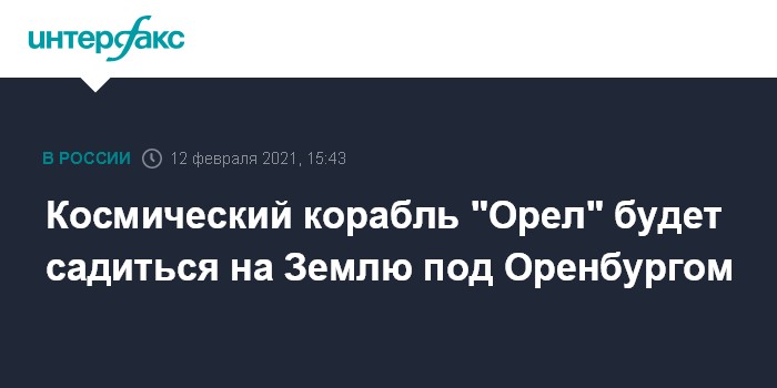 Москва. 12 февраля. INTERFAX.RU - Район посадки нового космического корабля "Орел" будет находиться под Оренбургом, сообщил генконструктор Центра эксплуатации наземной космической инфраструктуры Алексей Богомолов.