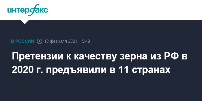 Претензии к качеству зерна из РФ в 2020 г. предъявили в 11 странах