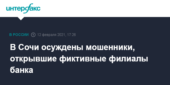 Москва. 12 февраля. INTERFAX.RU - Центральный суд Сочи признал виновными в мошенничестве четырех жителей Московской области, которые привлекали деньги граждан в несуществующие филиалы банка.