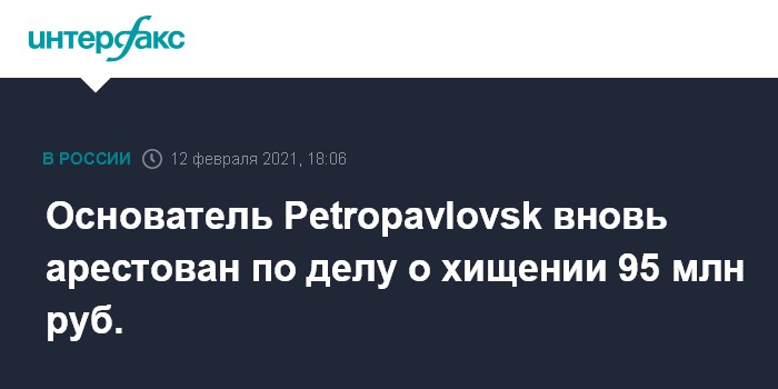 Основатель Petropavlovsk вновь арестован по делу о хищении 95 млн руб.