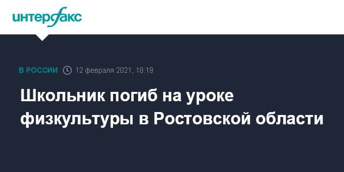 Москва. 12 февраля. INTERFAX.RU - Уголовное дело возбуждено по факту гибели школьника на уроке физкультуры в одной из школ Верхнедонского района Ростовской области. Об этом сообщает пресс-служба следственного управления СК РФ по региону.