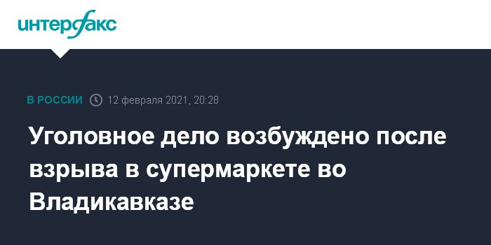 Москва. 12 февраля. INTERFAX.RU - По факту взрыва в супермаркете во Владикавказе возбуждено уголовное дело об уничтожении имущества по неосторожности, заявил начальник ГУ МЧС России по региону Александр Хоружий.
