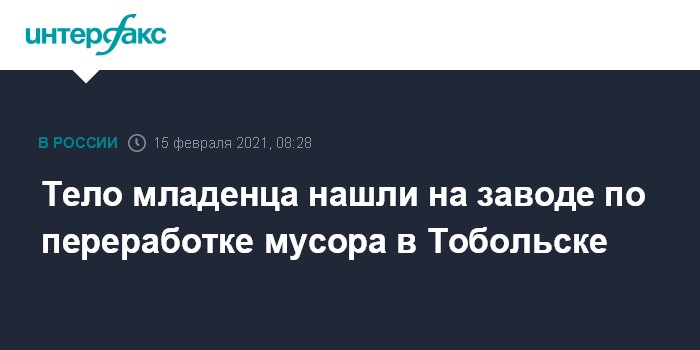 Москва. 15 февраля. INTERFAX.RU - Следственные органы начали проверку по факту обнаружения тела младенца на предприятии по сортировке мусора в Тобольске Тюменской области, сообщает региональное управление СКР.