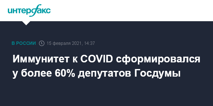 Иммунитет к COVID сформировался у более 60% депутатов Госдумы