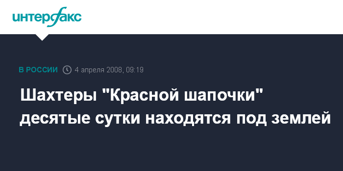Шахтеры "Красной шапочки" десятые сутки находятся под землей