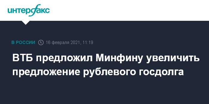 ВТБ предложил Минфину увеличить предложение рублевого госдолга