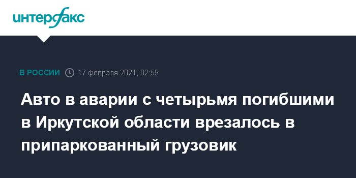 Авто в аварии с четырьмя погибшими в Иркутской области врезалось в припаркованный грузовик