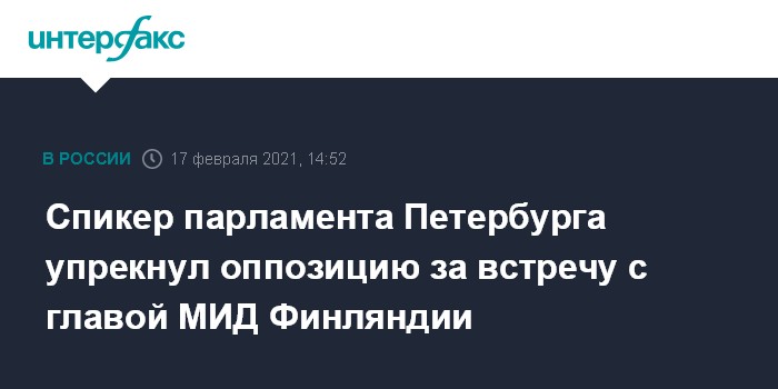 Ранее СМИ сообщили о встрече с главой МИД Финляндии Пеккой Хаависто в Санкт-Петербурге. По данным СМИ, на встрече в финском генконсульстве присутствовали депутаты Законодательного собрания северной столицы Борис Вишневский и Максим Резник.
