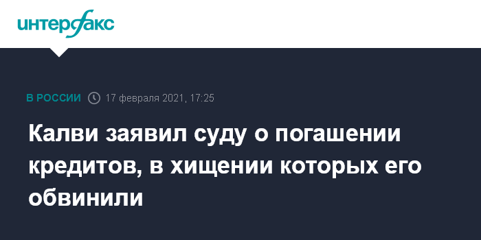 Калви заявил суду о погашении кредитов, в хищении которых его обвинили