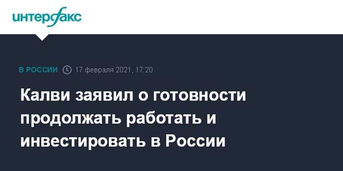 Калви заявил о готовности продолжать работать и инвестировать в России