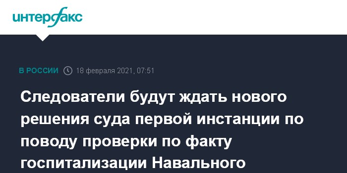 Следователи будут ждать нового решения суда первой инстанции по поводу проверки по факту госпитализации Навального