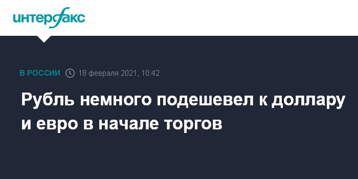 Как отмечают эксперты "Интерфакс-ЦЭА", рубль дешевеет к доллару и евро на старте торгов на фоне негативных сигналов с внешних рынков. В четверг торговые площадки материкового Китая возобновили работу после празднования Нового года по лунному календарю, и основные индексы бирж Поднебесной снижаются из-за выхода инвесторов из рисковых активов.