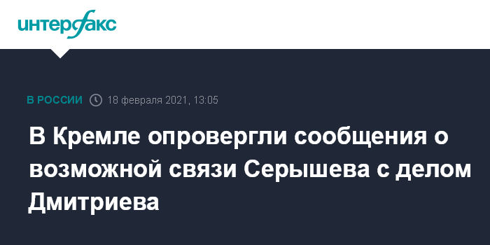 В Кремле опровергли сообщения о возможной связи Серышева с делом Дмитриева
