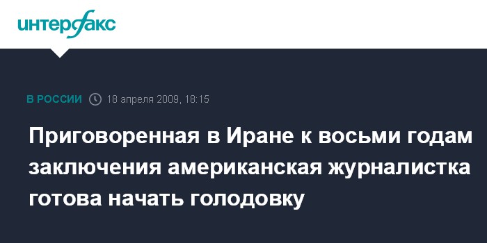 Приговоренная в Иране к восьми годам заключения американская журналистка готова начать голодовку