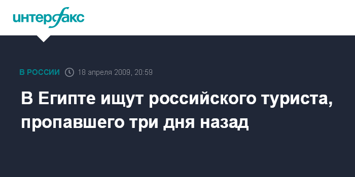Москва. 18 апреля. ИНТЕРФАКС - В районе горы Моисея в Египте пропал 18-летний россиянин, сообщает в субботу телеканал "Вести".