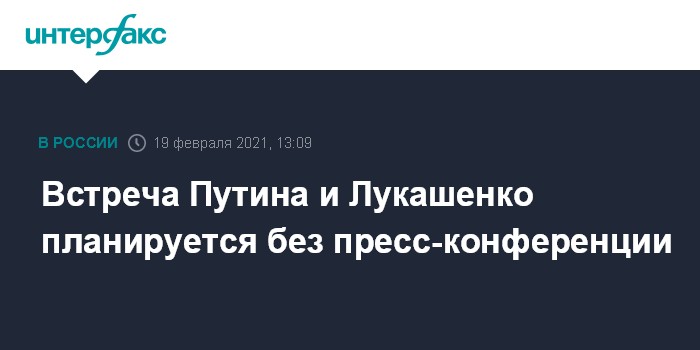 Москва. 19 февраля. INTERFAX.RU - Место встречи президентов России и Белоруссии Владимира Путина и Александра Лукашенко еще не определено, пресс-конференции по итогам переговоров не планируется, сообщил пресс-секретарь Путина Дмитрий Песков.