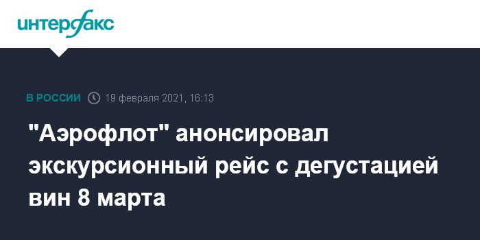 "Аэрофлот" анонсировал экскурсионный рейс с дегустацией вин 8 марта