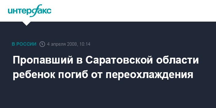 Пропавший в Саратовской области ребенок погиб от переохлаждения