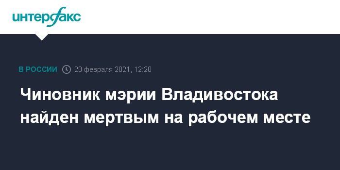 Чиновник мэрии Владивостока найден мертвым на рабочем месте