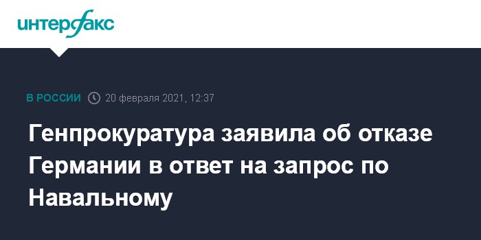 Москва. 20 февраля. INTERFAX.RU - Генеральная прокуратура России заявила об очередном отказе властей ФРГ от сотрудничества по делу о предполагаемом отравлении Алексея Навального.