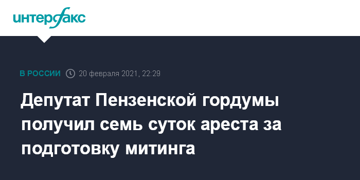 Депутат Пензенской гордумы получил семь суток ареста за подготовку митинга