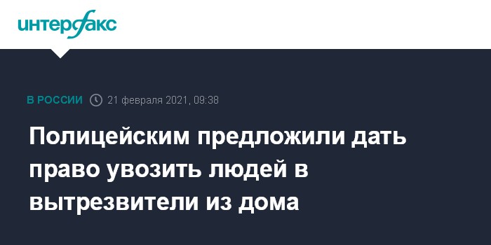 Москва. 21 февраля. INTERFAX.RU - В МВД РФ разработали порядок доставки в вытрезвители и отделения полиции людей в состоянии алкогольного, наркотического или иного токсического опьянения. Документ опубликован на официальном интернет-портале проектов нормативно-правовых актов.