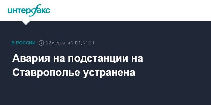 Москва. 22 февраля. INTERFAX.RU - Специалисты восстановили электроснабжение в городе Михайловске (Ставропольский край), которое было нарушено днем в понедельник из-за аварии на подстанции, сообщила пресс-служба краевого главка МЧС.