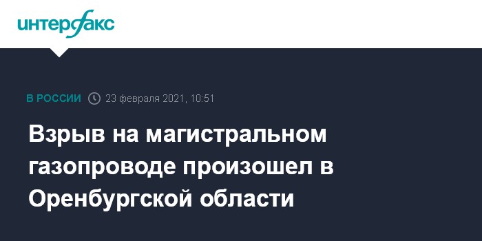 Москва. 23 февраля. INTERFAX.RU - В Илекском районе Оренбургской области во вторник произошел взрыв на федеральном магистральном газопроводе, говорится в сообщении пресс-службы главы региона.