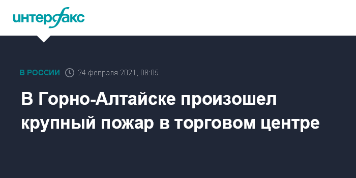 Москва. 24 февраля. INTERFAX.RU - В Горно-Алтайске загорелся торговый центр "Ткацкий", сообщили в пресс-службе МЧС.