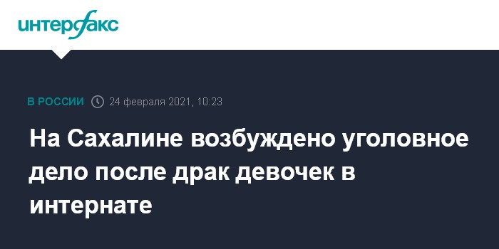 Москва. 24 февраля. INTERFAX.RU - На Сахалине две 15-летние воспитанницы школы-интерната "Радуга" дважды подрались, одна из них с травмами попала в больницу. В отношении персонала интерната возбуждено уголовное дело о халатности, сообщили областная прокуратура и управление СК.