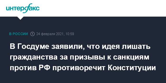 В Госдуме заявили, что идея лишать гражданства за призывы к санкциям против РФ противоречит Конституции