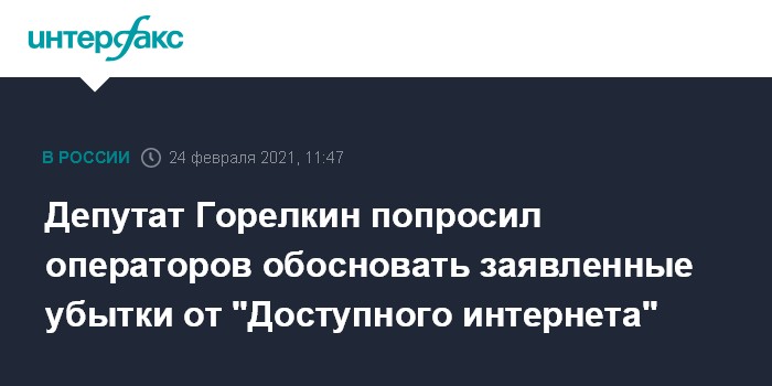 Депутат Горелкин попросил операторов обосновать заявленные убытки от "Доступного интернета"